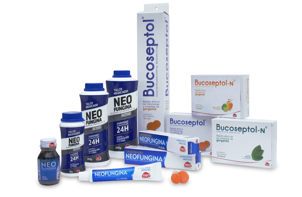 BUCOSEPTOL Reg. Sanitario No INVIMA 2005 M-007547 R-2. TALCO NEOFUNGINA Reg. Sanitario No INVIMA 2010 M-003107-R3 UNGÜENTO NEOFUNGINA Reg. Sanitario No INVIMA 2010 M-003159-R3 TÓPICO NEOFUNGINA Reg. Sanitario INVIMA 2011M-003557-R3 TOP-TAP Reg. Sanitario INVIMA 2011 M001418 R-2.